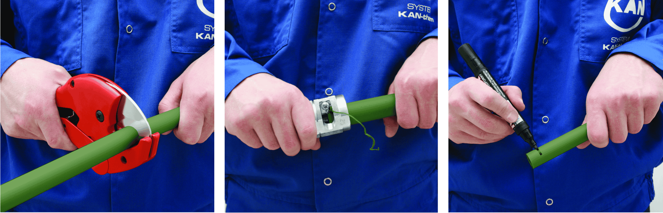 应使用塑料管切割器将所选管道垂直切割至所需长度。不允许使用其他有缺陷(钝或有缺口)的工具或刀具